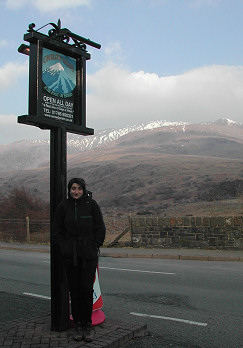 It's a pub that I'd been intending to visit for several years and finally popped in over Easter 1998. It's on the A4085 a few miles north of Beddgelert. A few locals scattered around and lots of visitors mainly in the form of walkers. The view from the pub is spectacular on a clear day with Snowdon lying just to the East. In fact a path up Snowdon lies just a few yards from the front door of the pub. It's quite a quiet path up Snowdon too. To the south there's the picturesque Llyn y Gadair.There's a tremendous range of good quality real ales on offer and I reckon it's one of the best in Wales. Even so, the pint I was an inch short of a pint so had to ask for a top up. Foodwise there's allsorts on offer from home-made soups, unusual salads, home-made chicken liver pate, great chargrilled steaks and a full range of pizzas! In the Spring and Summer they also hold barbecues outside by the 'Excalibur' waterfall with local lamb burgers available as well as lamb chops, sausages etc. They're also the 'Which Good Food Guide'. They encourage families and offer a children's menu and out the back you'll find an adventure playground. There's also accommodation available though you'll have to ring them for more details.