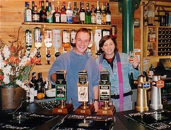 Once in a while I come across a real ale establishment by chance, and this is just one of those places. Hold on, I lie, mention the word Masham and what images are created in your mind? Perhaps shire horses, a traditional cooper, or if you're an ovine fan perhaps a market full of mashams (a traditional rare sheep breed), not to mention a pint of Theaksons Old Peculiar, or for more recent visitors perhaps a pint of Black Sheep bitter. For me, all are shaking around in my head as I travel at speed along the seemingly endlessly gently snaking M4 munching on a Rowes Saffron bun nervously glancing outside at the atrocious weather, the spray from the coach looking more like the wash of a speedboat than. As I've got a little time on my hands (I'm on a National Express coach up to London for the weekend) I'll type you a quick tale of beer, before my battery runs out. Theakstons brewery, which started brewing in 1875, is one of Yorkshire's oldest brewers and was set up by Thomas Theakston. The brewery enjoyed over a century of blissful independence, and then in the 1980's was taken over by Matthew Brown. and later by Scottish and Newcastle before being bought back by the Theakston family in the autumn of 2003. Whilst under the ownership of Scottish and Newcastle, Paul Theakston decided to go it alone and set up his own brewery where else but Masham! He perhaps rather appropriately named it 'Black Sheep' and its popularity is such that today the beers are now as well known to many in Yorkshire as the great Theakston ales. Anyhow, I have a slight confession to make. I'd been out for a day in the Dales with my girlfriend of the time (she's now my wife so must have subsequently forgiven me, or maybe this story's fortunately slipped from her otherwise excellent memory) and had a nice morning wandering around Hawes with lunch in a café and a quick visit to the Wensleydale creamery to pick up some decent cheese! We'd agreed to head over to Masham for the afternoon to have a look around the market but didn't actually get there until about 3.30pm after a few wrong turns. (WARNING: Next sentence contains a excuse) Not having been to Masham before I foolishly made another driving error and turned left upon entering the village instead of right. Before we knew it we were in the Black Sheep Brewery car park. We thought we'd just check when the brewery shop closed (can't miss the opportunity to top up one's beer cellar with some fine regional ales) so headed in and the kind lady behind the desk immediately stood and showed us to the room behind and said, 'Oooo, you've just missed the last tour, but they've only just gone throughto watch the video, so be quick and you can pay me later.' Ten seconds later we were in a room smelling of beer full of eager folk avidly watching the Black Sheep story unfurl. An hour or so passed, traditional Yorkshire square slate fermenting vessels were seen along with hundreds of gallons of fine ale sloshing around and being sprayed seemingly in all directions but I exaggerate! Before we knew it, we were in the shop, the final obstacle before the more important bar area / beer testing zone. Brief pause to gaze upwards… What an amazing and huge building, it was apparently once the North of England maltings. Gaze forwards…. the full range of Black Sheep beers are available, and the friendly barman even allowed us to pose behind the bar, what a gentleman. For the hungry, meals are available from soup and sandwiches up with an emphasis on local Yorkshire produce. Some seating is also available outside. A whole host of entertainment is also available both during the day and also evenings but it's worth calling them for information about what's on when. My good friend Rog recommends the food and evening entertainment. To avoid disappointment do call to check if they're open. Oh, one final comment. By the time we left the brewery and headed down to the market in the square, they'd all packed up and gone home. Hmmm, better come a little earlier next time…